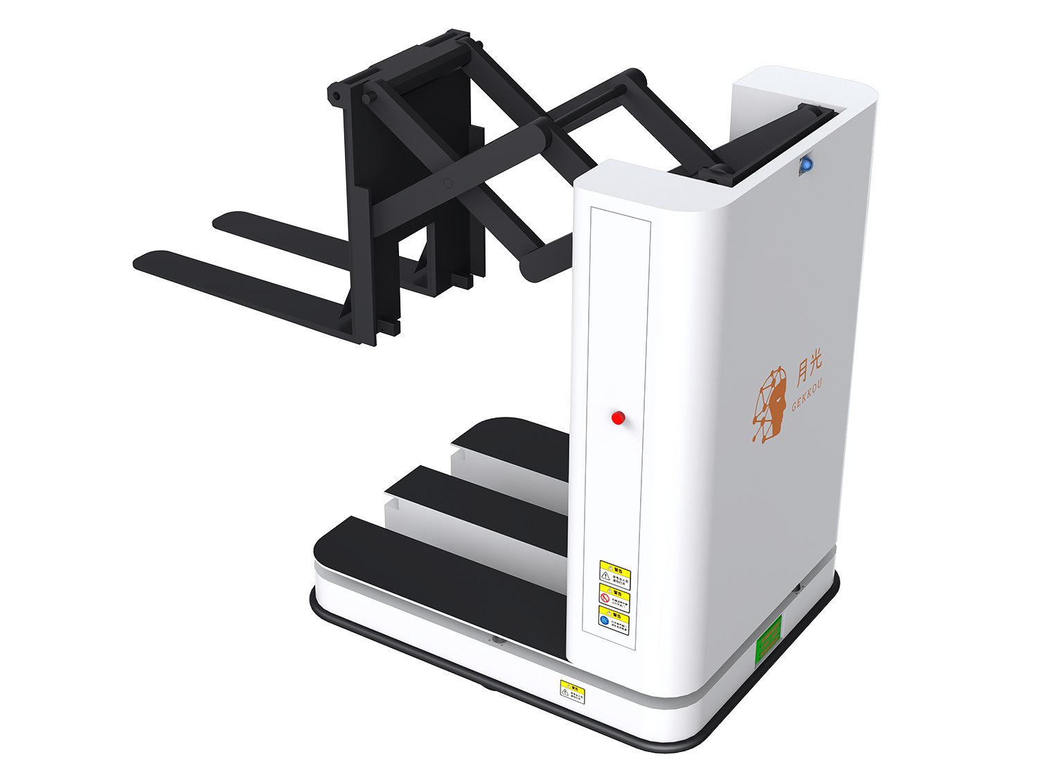 AMFはAutonomous-Mobile-Forkliftの略称で、月光ロボットはAMRのプラットフォームにフォークリフトの機能を有するロボットを、AMFと定義しています。月光ロボットのMFシリーズはこのようなMobileForkliftです、プラットフォームの動きとしては、2025年12月時点では、業界初(日本国内)となる周波数変調連続波Lidarを搭載したAMRになります。FMCW-Lidar、業界最多3回の変調があり、高い精度で環境の情報を得ることが可能。ナビゲーションに関してはSLAM式の中に、グリッド式ナビゲーション、反射板ナビゲーション方式を混合して使用可能なハイブリッド式になっています。すべてはSLAM式点群マップの中で設定できるため、煩雑なグリッド式ナビゲーション用のシステムの構築の必要はありません(床にQRコードを貼る必要があります)。SLAMモードではナビゲーション精度が±10mm、70%の環境変化に対応可能、70%以上の環境の変化があるエリアでは、グリッド式ナビゲーションを使用することで、100%の環境変化に対応可能、また、AMFの車体の上にも3DLidarを搭載可能なので、複数のナビゲーションを融合し、安定した自律走行を実現しています。狭い経路を通過する際にもグリッド式で本体寸法左右+5mmの場所を通過した実績があります。フォークリフトでありながら、動きはAMRなので、装置とのドッキング精度は±5mmを実現しています。また、全方向タイプの機種では前後左右の動きや、角度の調整は通常のAGFより早くてスムーズなため、パレットに対して自己位置の調整が簡単。