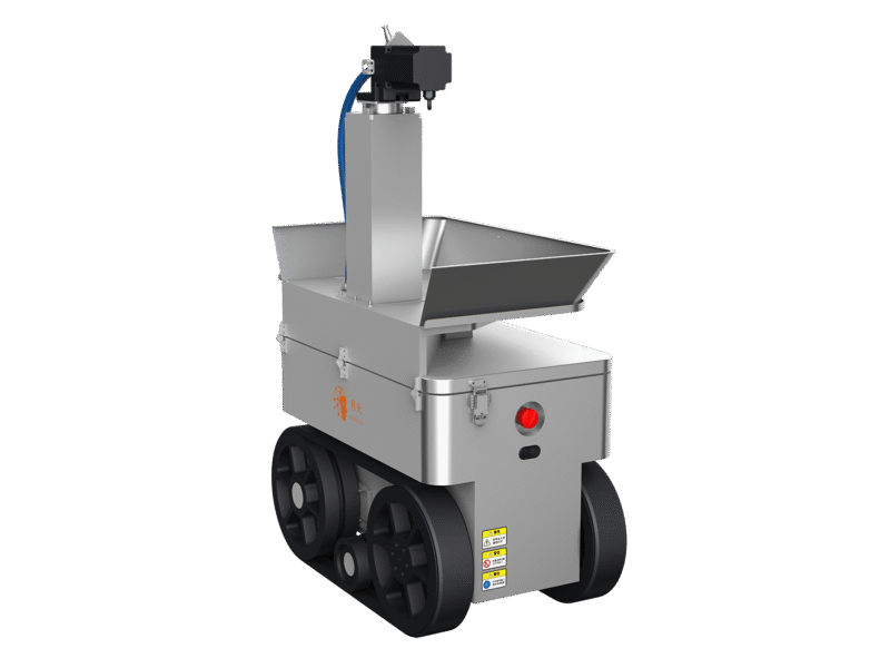 月光シリーズの掃除洗浄ロボットの最初の製品となるWashingRobot、自動洗浄ロボット、テクトレ(株)自社設計、自社製造。搬送ロボットと同じコントローラーを搭載することで、1つの現場に1つの制御システムでこちらの洗浄ロボットをも制御可能。